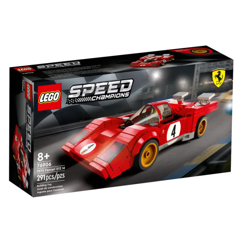 Një kënaqësi për tifozët e makinave të njohura të garave Replika e detajuar LEGO® e Ferrarit 512 M të egër të shpejtë të vitit 1970.