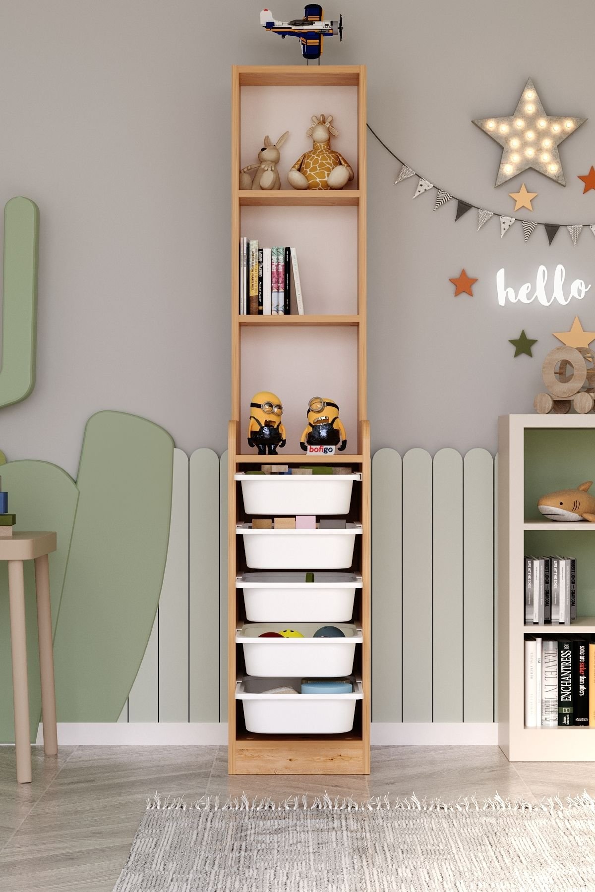 Kabineti lodrash me rafte,5 Shporta 3 Dollap – Kafe