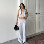 Fustan i bardhë-V neck white dress