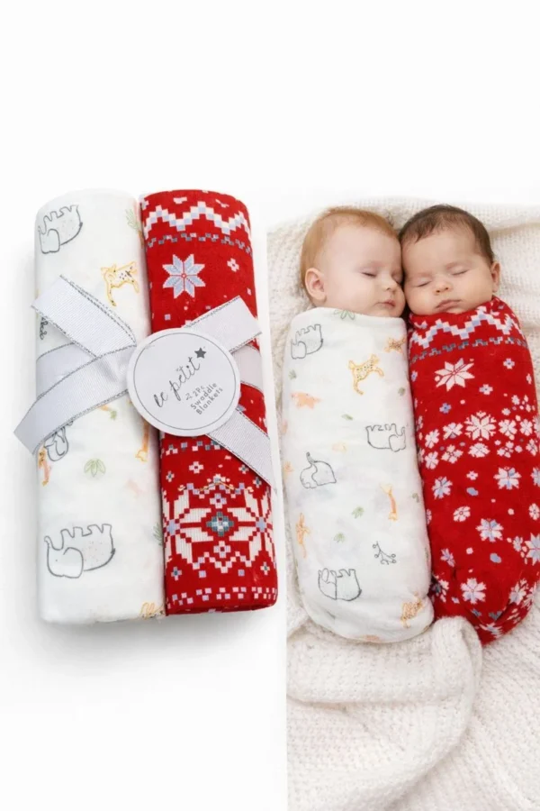 Ky set i veçantë përfshin dy mbulesa të buta për bebe: një me motive të ëmbla kafshësh dhe një me dizajn festiv në ngjyrë të kuqe, që sjell ngrohtësi dhe stil. Të punuara me material të butë dhe të rehatshëm, janë ideale për mbulim, përgjumje apo momente përqafimi. Zgjedhje perfekte për sezonin e ftohtë dhe një dhuratë shumë e bukur për të sapolindurit.