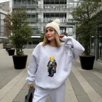 Trenerkë ngjyrë të zezë për femra me përshtatje komode, xhepa me zinxhir dhe bel elastik me lidhëse. Ideale për aktivitete sportive dhe përdorim të përditshëm.